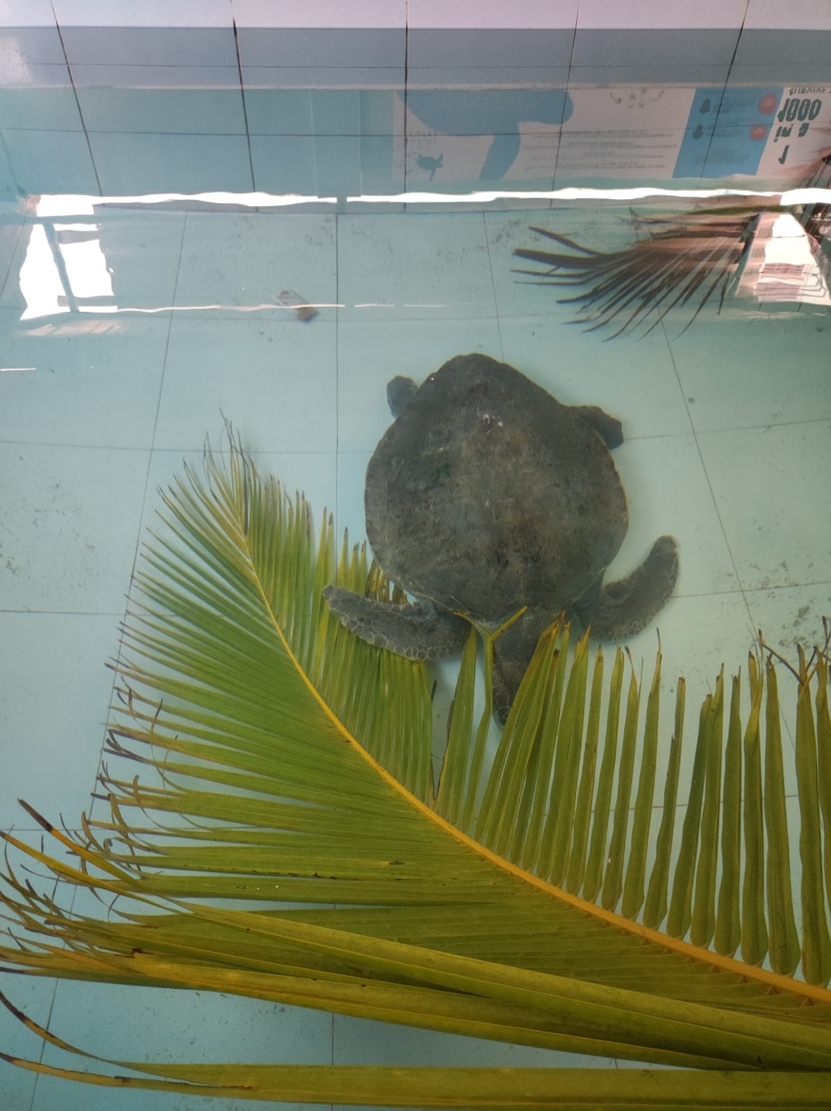 Every other week on a Friday is also turtle weighing day, with every other weighing day also being measuring day. For turtle weighing I show the volunteers how to safely pick up and handle each turtle (as this depends on their injuries), they are then weighed before we then scrub and clean their carapaces. This is to clean and remove excess alage build up on their carapaces. In the wild turtles will visit cleaning stations where fish will eat algae from their carapaces, and they also scratch and rub their carapaces on rocks to remove excess build up. Turtles are sensitive to touch and can feel through their carapace so we make sure not to scrub to hard. Each turtle has its own tub with its own designated toothbrushes and sponges to reduce the chance of contamination and spread of any diseases.